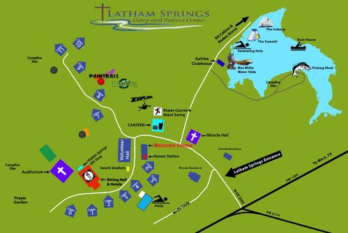 - Where? Latham Springs Camp & Retreat Center, 134 Private Road 223, Aquilla, TX. This camp is conveniently located between DFW and Waco, just west of Interstate 35.